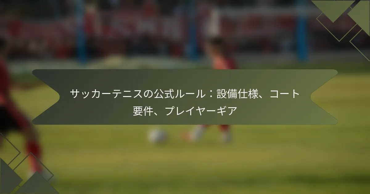 サッカーテニスはサッカーとテニスの要素を組み合わせたスポーツで、公正なプレーを確保するために特定の用具とコートの仕様が必要です。プレーヤーはボールのサイズ、ネットの高さ、コートの寸法に関するガイドラインを遵守し、パフォーマンスと安全性を向上させるために適切なフットウェアと保護具を選択しなければなりません。これらの公式ルールを理解することは、プレーヤーと主催者の両方にとって最適なプレー環境を作るために不可欠です。