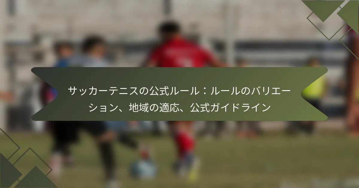 サッカーテニスの公式ルールは、サッカーとテニスの要素を組み合わせ、スキル、チームワーク、スポーツマンシップに焦点を当てています。プレイヤーは、手と腕以外の体のどの部分を使っても、ネットを越えて相手のコートにボールを打ち返すことでポイントを獲得します。場所やスキルレベルに応じたさまざまなルールの適応が存在し、プレイヤーはこれらの違いを理解することが、公平なプレイを確保するために重要です。