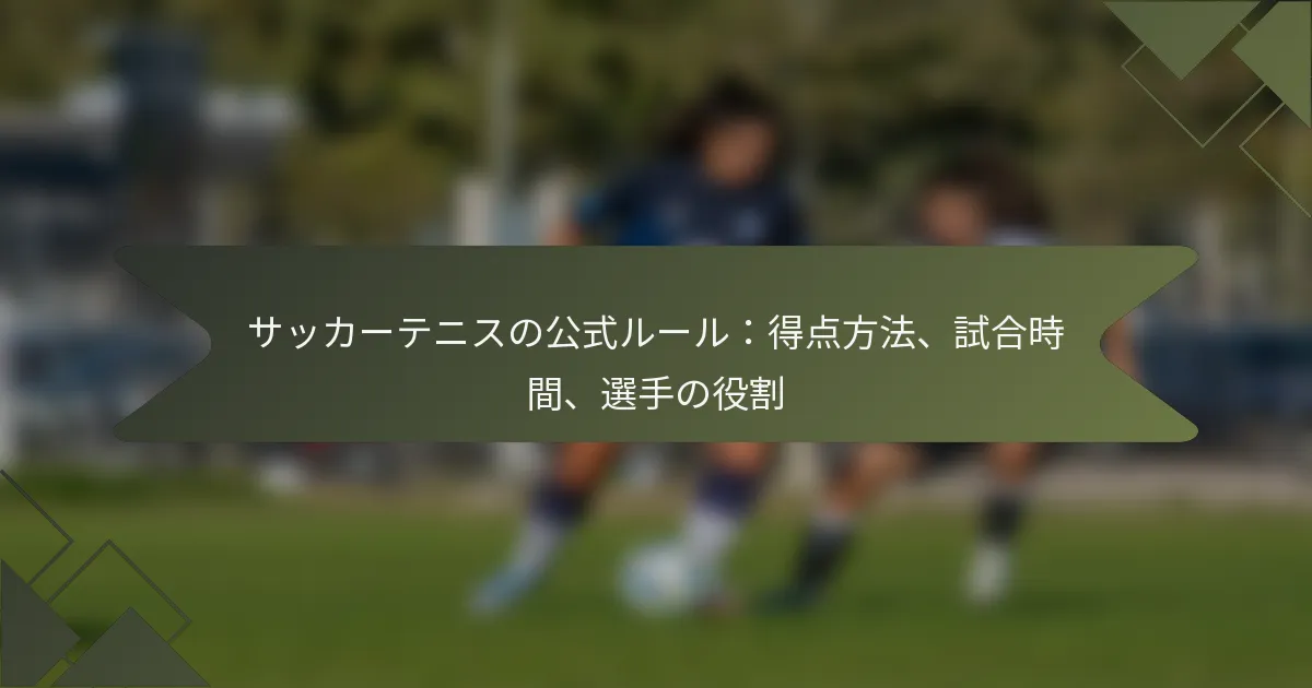 サッカーテニスはサッカーとテニスの要素を組み合わせたスポーツで、選手またはチームがラリーに勝つことで得点するポイントシステムを利用しています。試合はシングルスまたはダブルス形式で行われ、通常は30分から60分の間で行われ、特定の得点ルールが適用されます。選手の役割は重要で、各参加者にはチーム全体の戦略やパフォーマンスに影響を与える明確な責任があります。