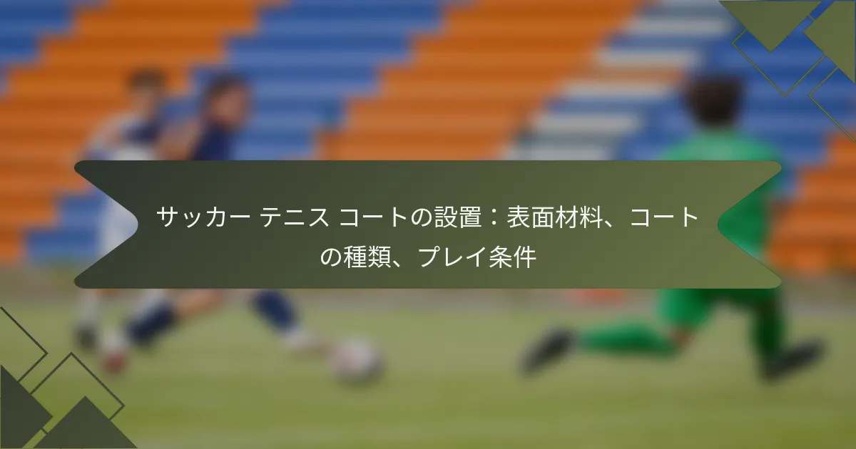 サッカーテニスコートを設置するには、天然芝、人工芝、クレー、ハードコートなどの表面材料を慎重に考慮する必要があります。各表面タイプは、ゲームプレイ、メンテナンス、プレイヤーの体験に影響を与える独自の特性を提供します。さらに、コートの種類や照明や天候などのプレイ条件の選択は、パフォーマンスとゲームの楽しさを向上させる上で重要な役割を果たします。